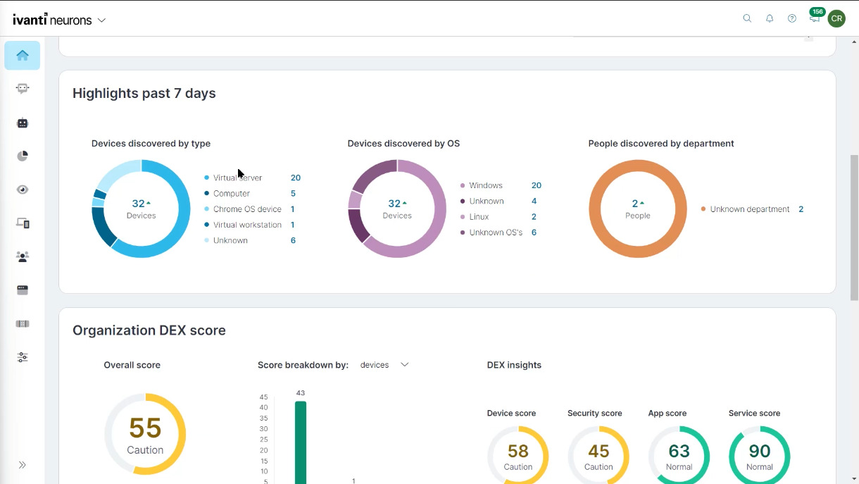 Ivanti Neurons for Digital Experience (DEX) mejora la productividad del usuario y optimiza el rendimiento de TI. Mide en tiempo real la experiencia digital de los empleados, detecta problemas antes de que ocurran y automatiza acciones para garantizar un entorno de trabajo fluido y eficiente. Gracias a su inteligencia contextual y visibilidad completa, permite a los equipos de TI entender cómo los dispositivos, aplicaciones y servicios afectan la experiencia del usuario final, y actuar de forma proactiva.